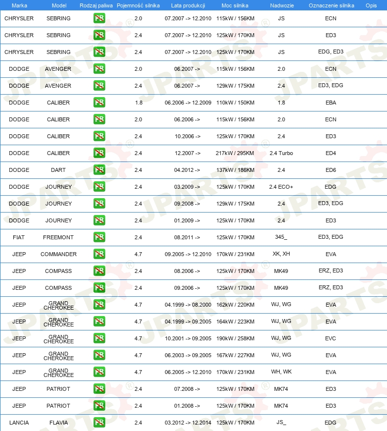 | świeca zapłonowa: | 1 elektroda masowa |