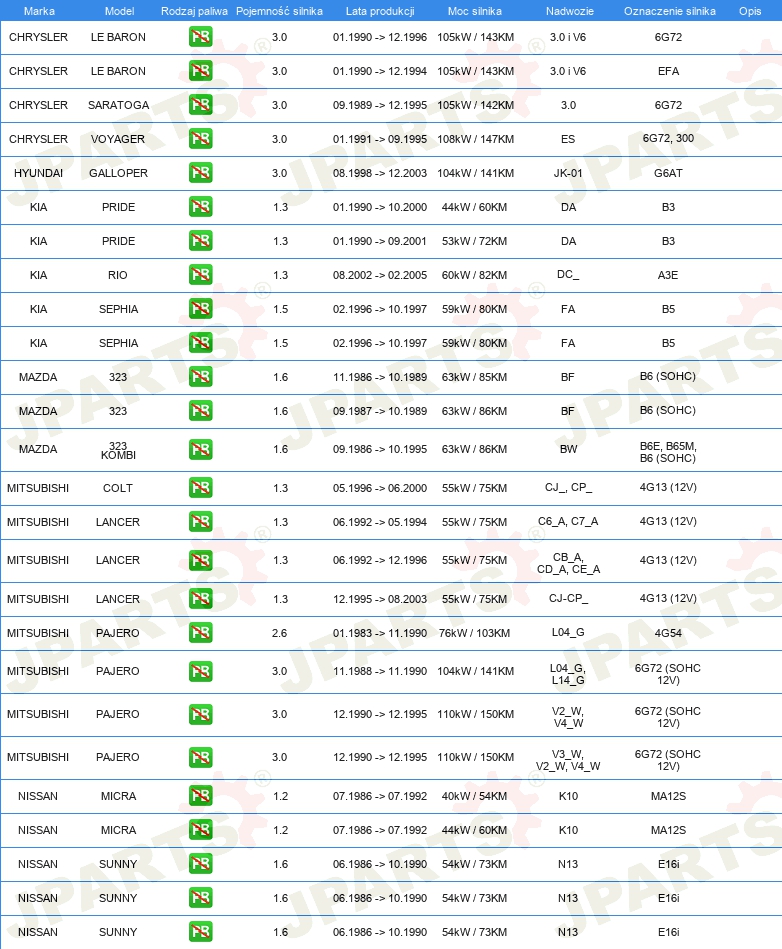 | świeca zapłonowa: | odkłócony, 5 kOhm |
