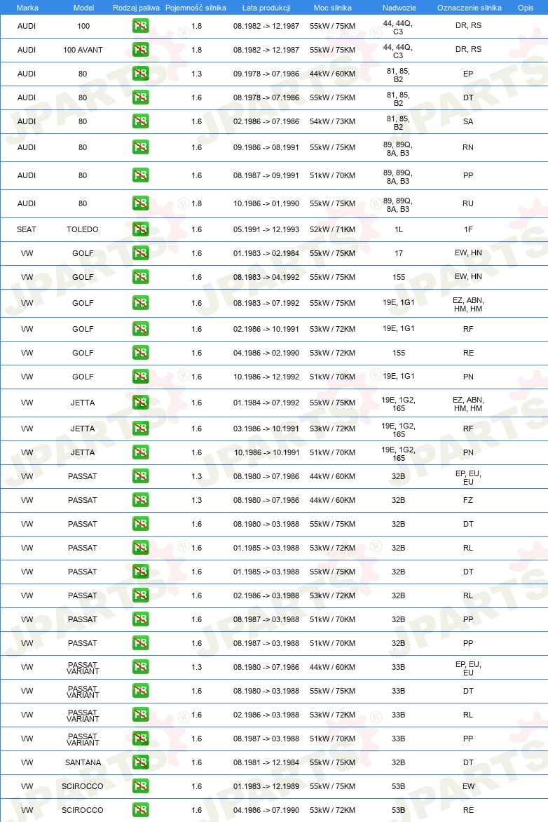 | świeca zapłonowa: | odkłócony, 1 kOhm |
