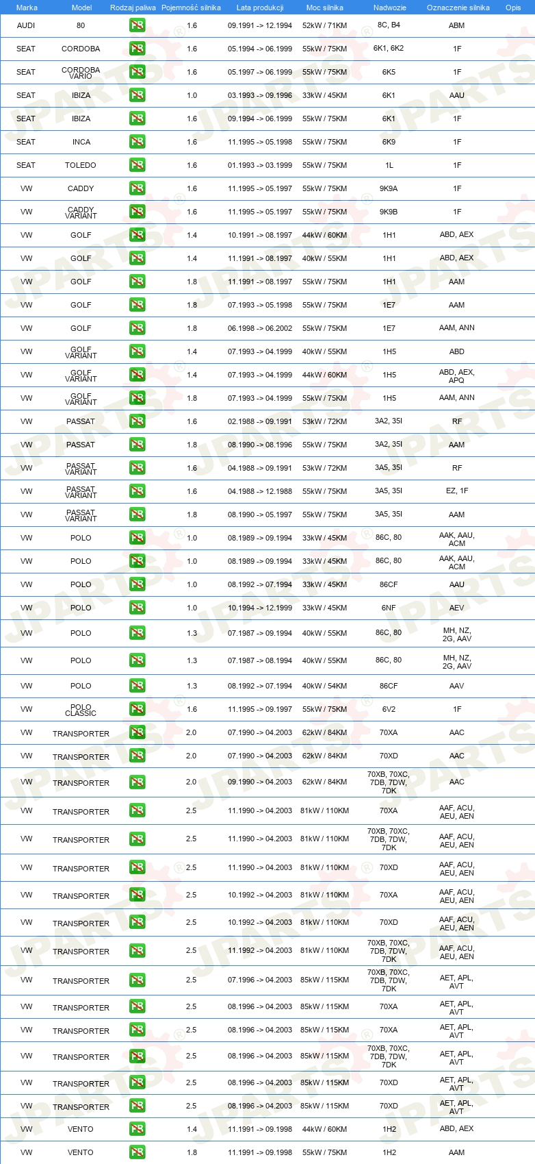 | świeca zapłonowa: | odkłócony, 1 kOhm |