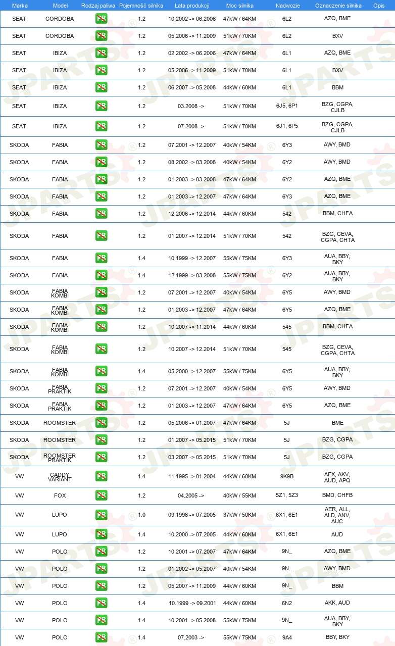 | świeca zapłonowa: | odkłócony, 1 kOhm |