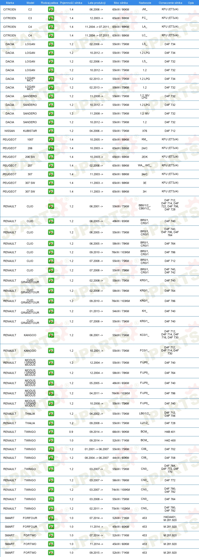 | świeca zapłonowa: | 1 elektroda masowa |