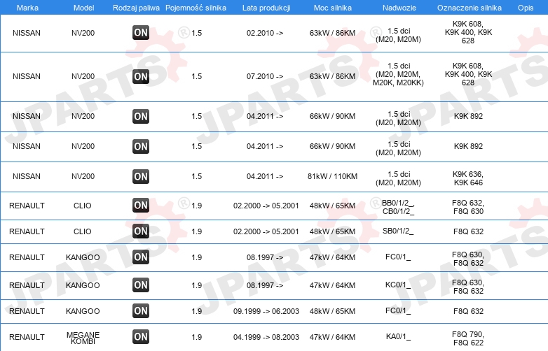 | Konstrukcja świec żarowych: | zdolny do nagrzewania wtórnego |