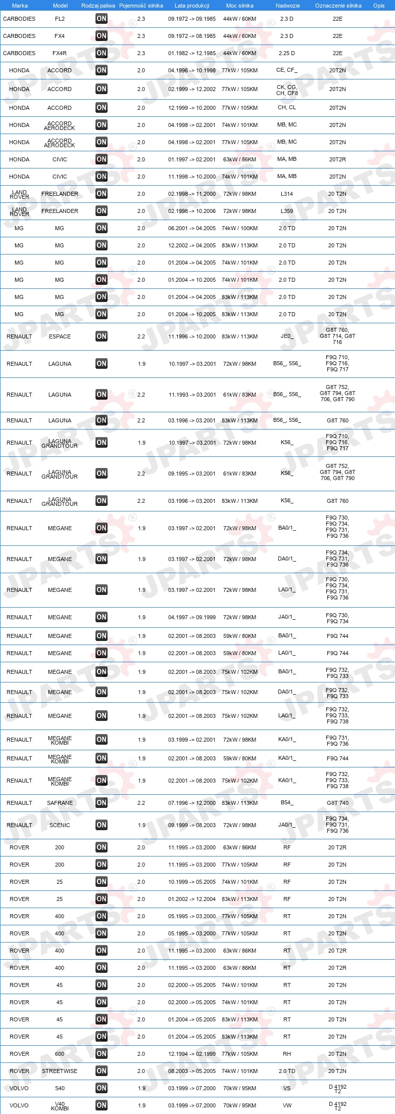 | Konstrukcja świec żarowych: | świeca żarowa ołówkowa |