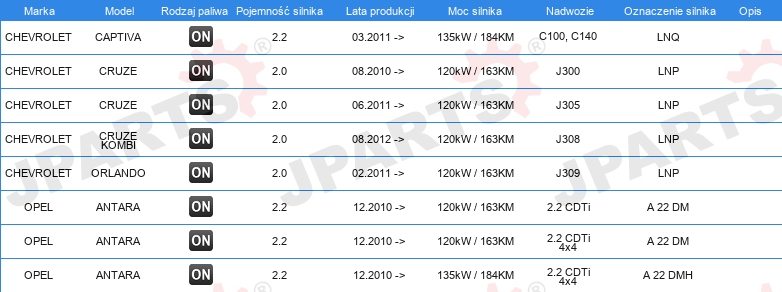 | Konstrukcja świec żarowych: | zdolny do nagrzewania wtórnego |