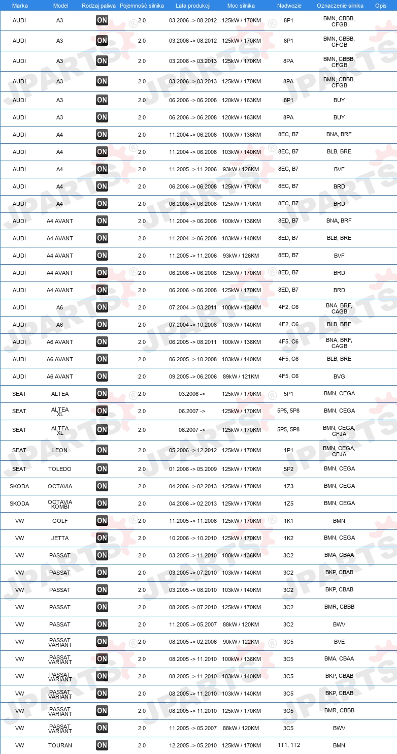 | Konstrukcja świec żarowych: | świeca żarowa ołówkowa |
