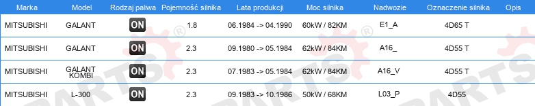 | Konstrukcja świec żarowych: | świeca żarowa metalowa |