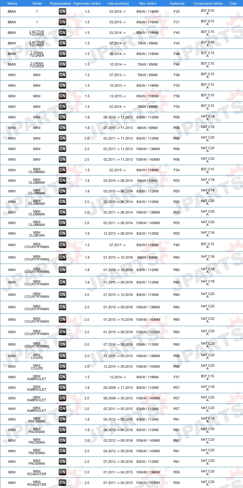 | Konstrukcja świec żarowych: | zdolny do nagrzewania wtórnego |