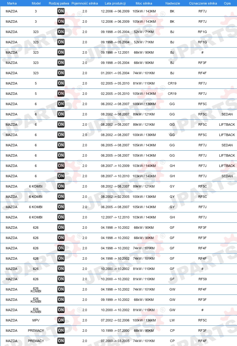 | Konstrukcja świec żarowych: | świeca żarowa ołówkowa |