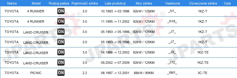 | uwzględnić informację serwisową: | z 4 cewkami |
