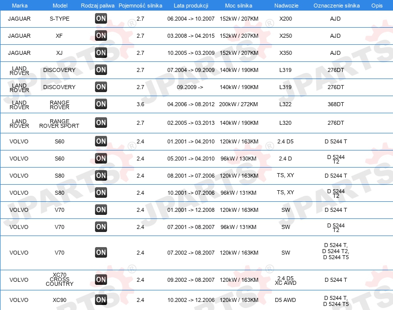 | uwzględnić informację serwisową: | z 4 cewkami |