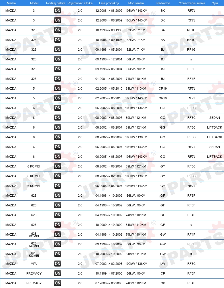 | Konstrukcja świec żarowych: | świeca żarowa metalowa |