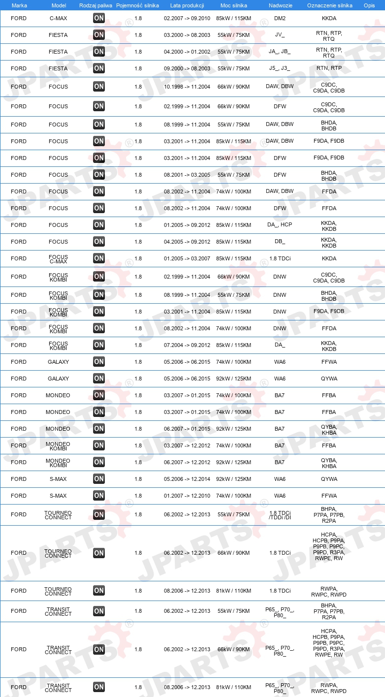| Konstrukcja świec żarowych: | świeca żarowa ołówkowa |