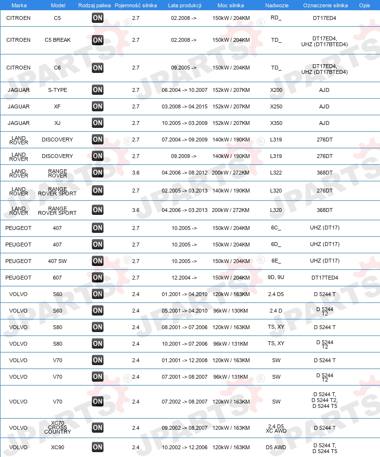 | Konstrukcja świec żarowych: | świeca żarowa ołówkowa |