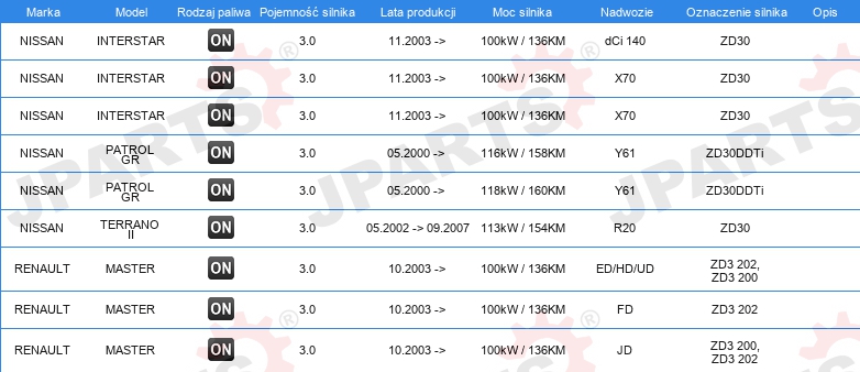 | Konstrukcja świec żarowych: | zdolny do nagrzewania wtórnego |