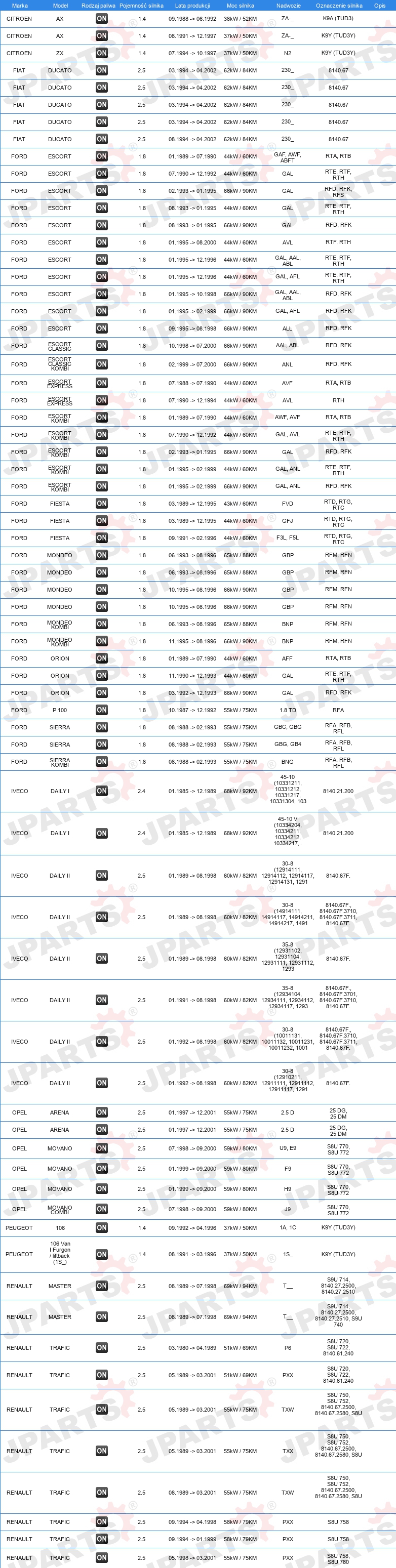 | Konstrukcja świec żarowych: | świeca żarowa ołówkowa |