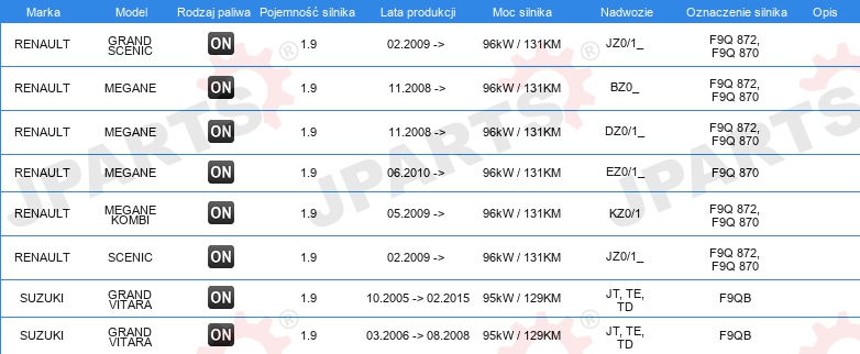 | Konstrukcja świec żarowych: | zdolny do nagrzewania wtórnego |