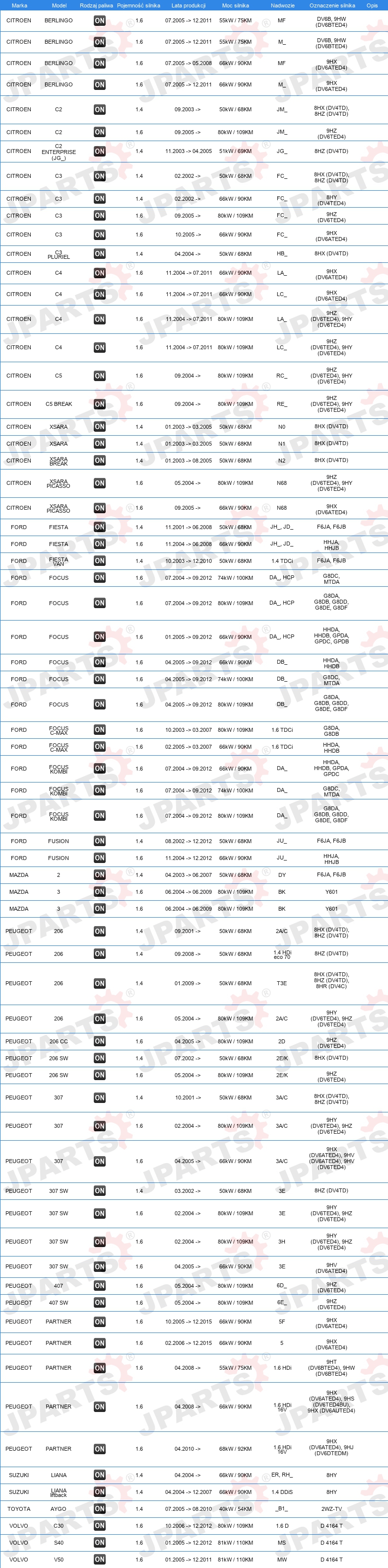 | Konstrukcja świec żarowych: | świeca żarowa ołówkowa |