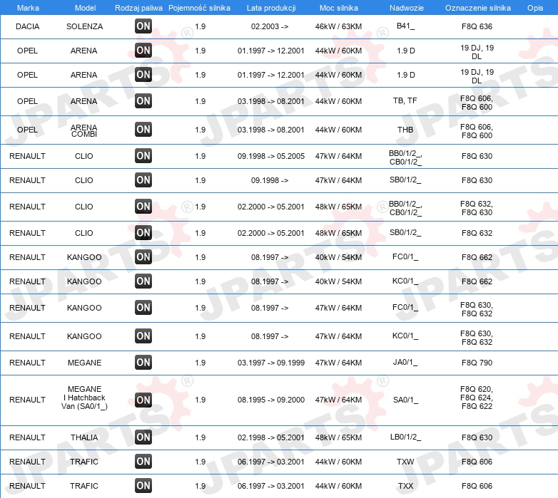 | Konstrukcja świec żarowych: | świeca żarowa ołówkowa |