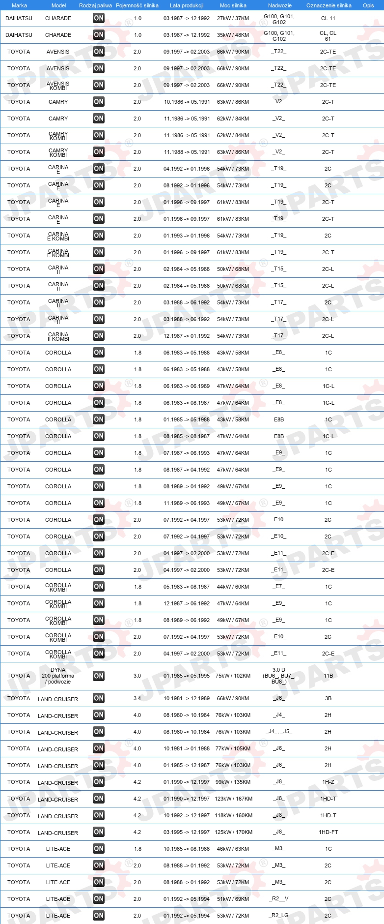 | Konstrukcja świec żarowych: | świeca żarowa ołówkowa |