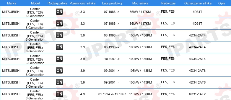 | Konstrukcja świec żarowych: | świeca żarowa ołówkowa |