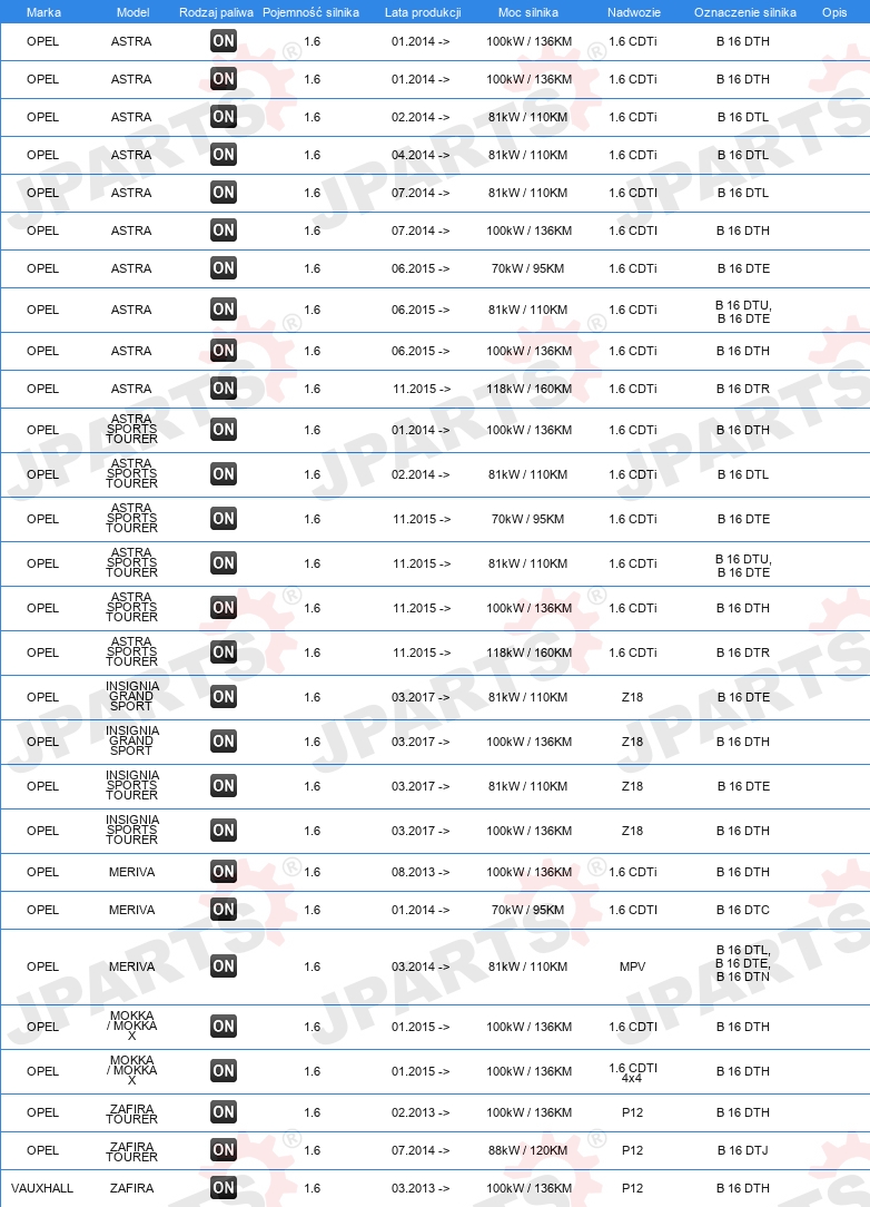 | Konstrukcja świec żarowych: | zdolny do nagrzewania wtórnego |