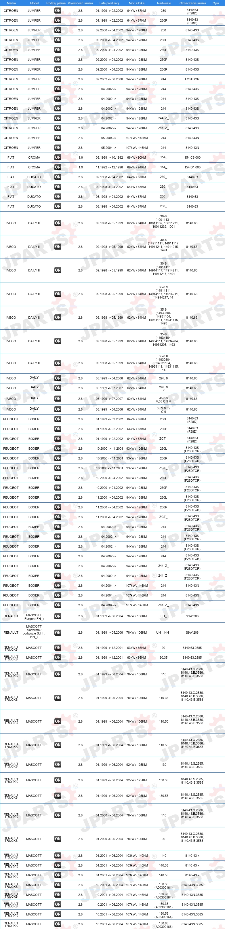 | Konstrukcja świec żarowych: | świeca żarowa ołówkowa |