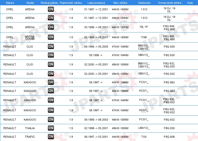 | Konstrukcja świec żarowych: | świeca żarowa ołówkowa |