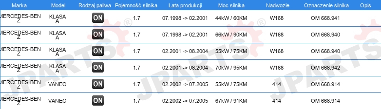 | Konstrukcja świec żarowych: | świeca żarowa ołówkowa |