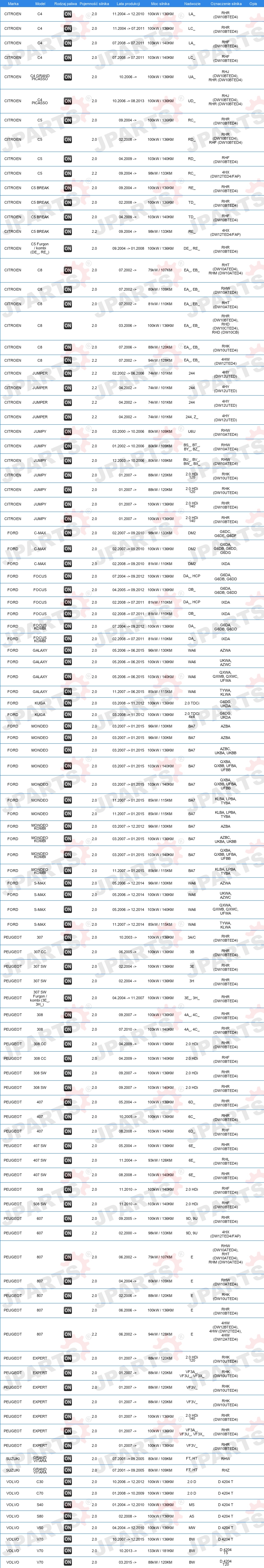 | Konstrukcja świec żarowych: | zdolny do nagrzewania wtórnego |