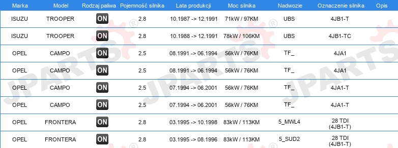 | Konstrukcja świec żarowych: | świeca żarowa ołówkowa |
