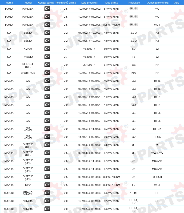 | Konstrukcja świec żarowych: | świeca żarowa ołówkowa |