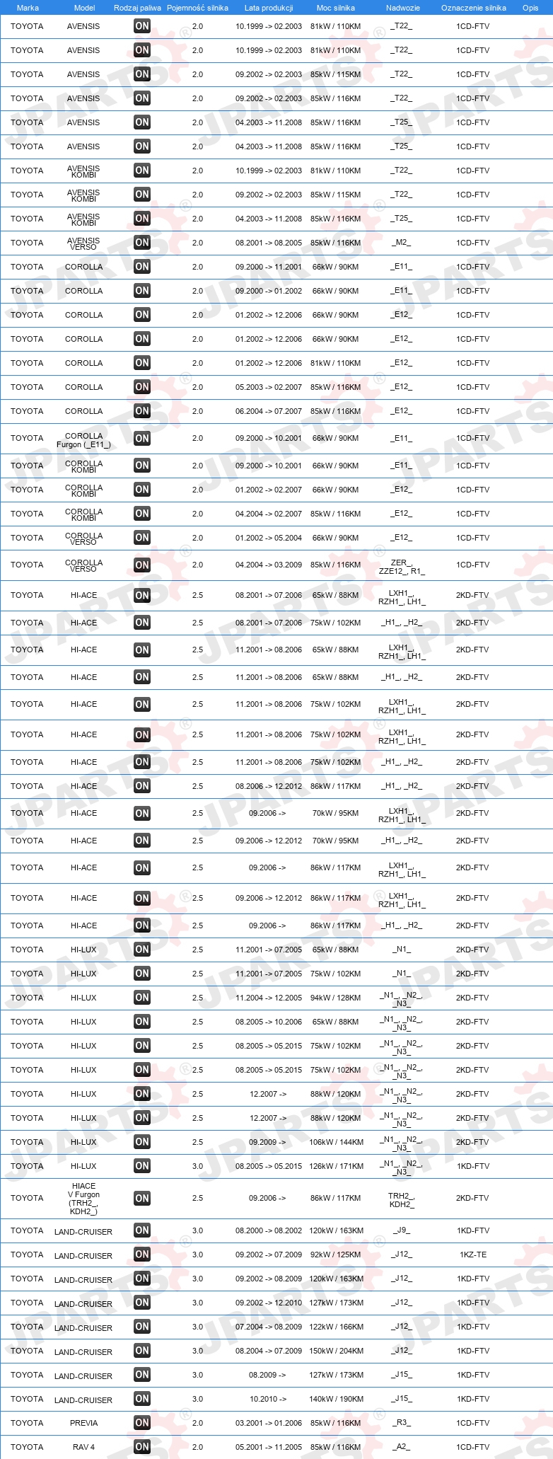 | Konstrukcja świec żarowych: | zdolny do nagrzewania wtórnego |