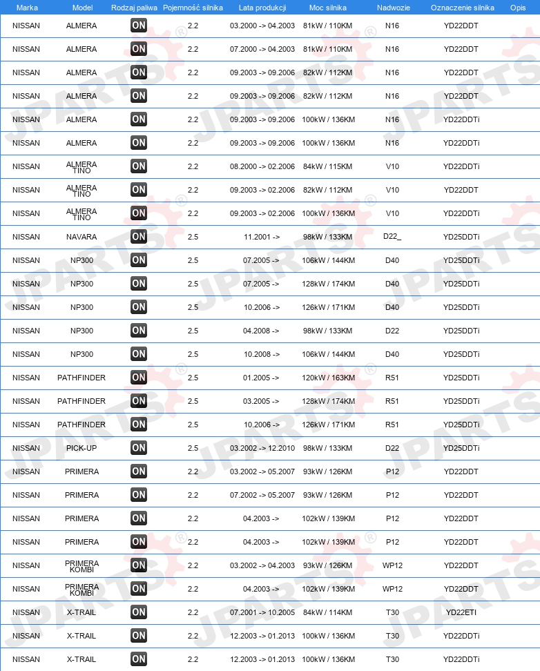 | Konstrukcja świec żarowych: | świeca żarowa ołówkowa |