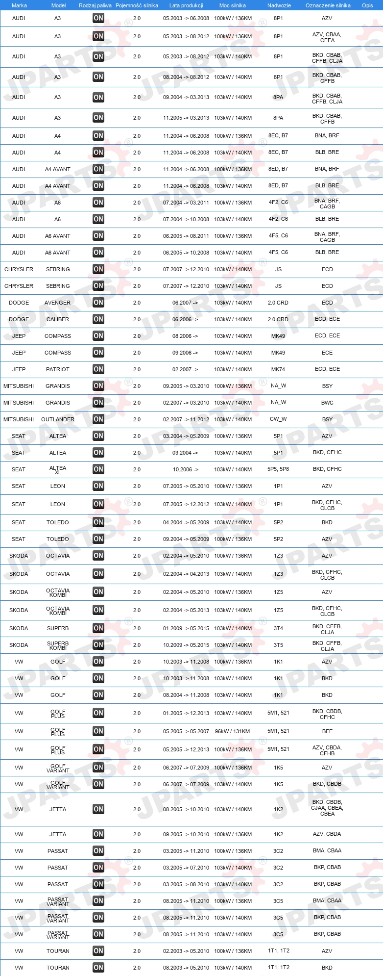 | Konstrukcja świec żarowych: | świeca żarowa ołówkowa |