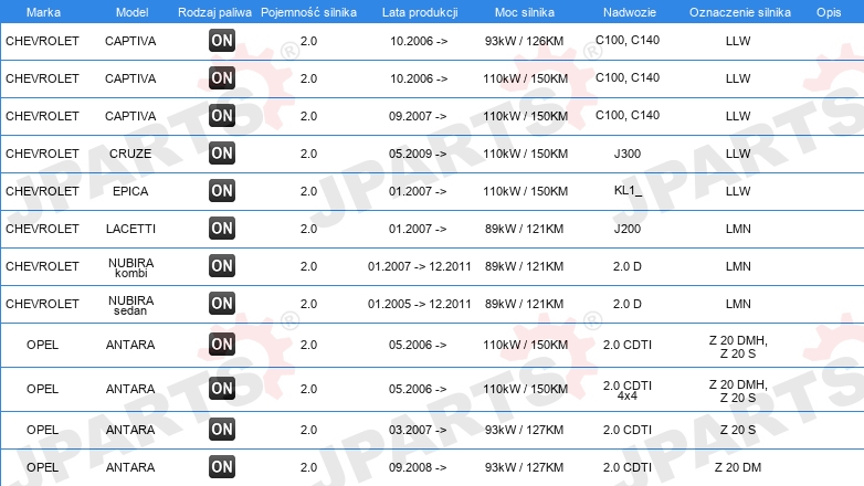 | Konstrukcja świec żarowych: | zdolny do nagrzewania wtórnego |
