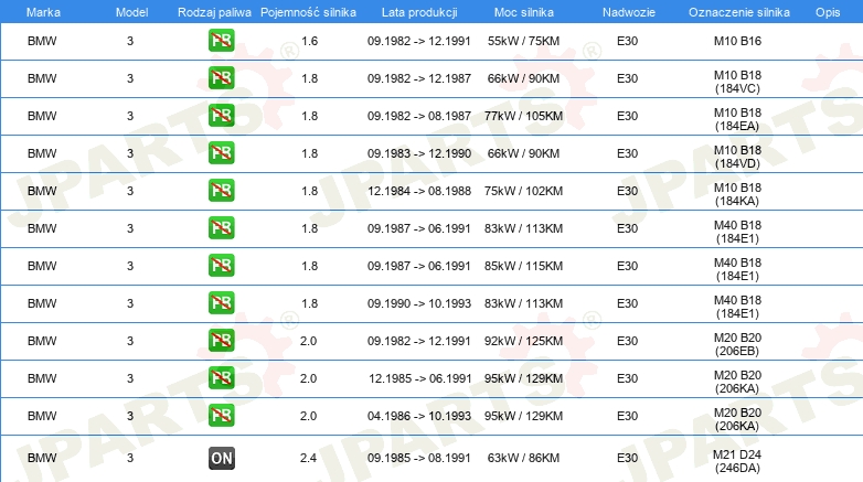 Informacje o części