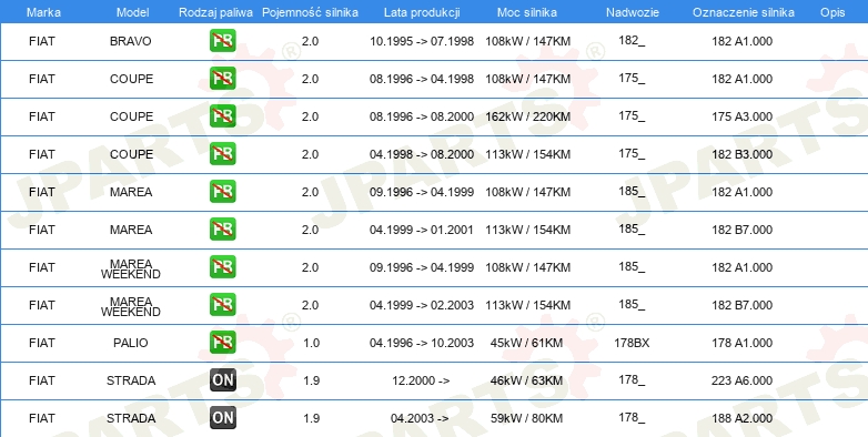 | Strona zabudowy: | Oś tylna strona prawa |