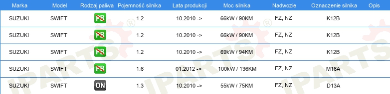 Informacje o części