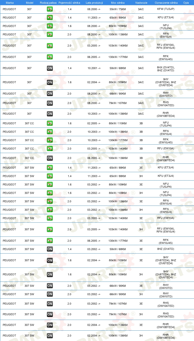 | Strona zabudowy: | z przodu |