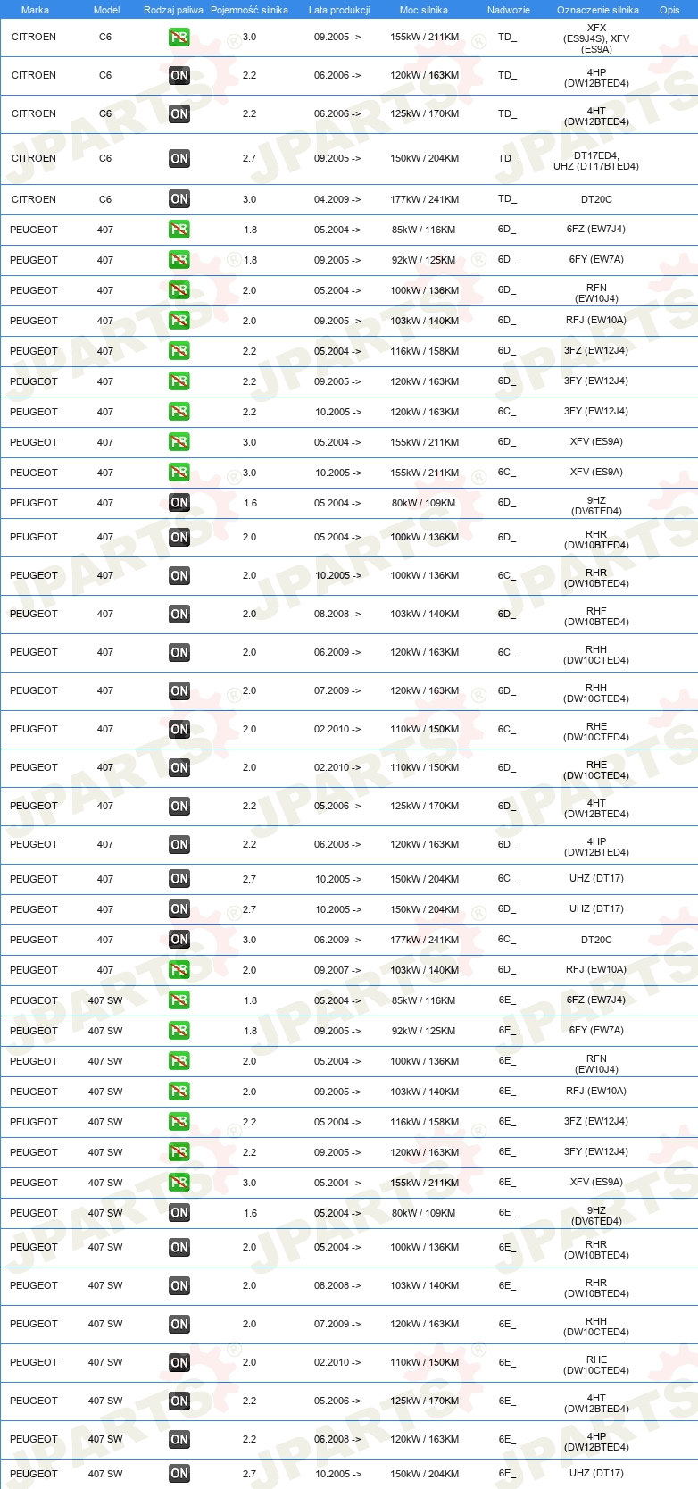 | Strona zabudowy: | z przodu |