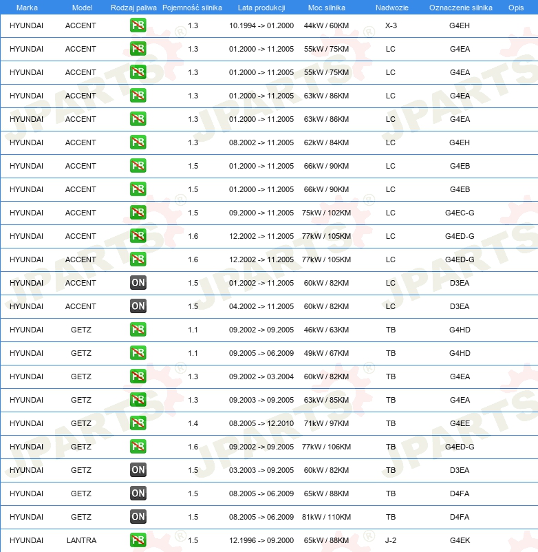 | Strona zabudowy: | Oś przednia |