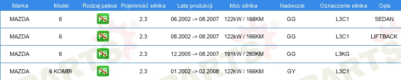Informacje o części