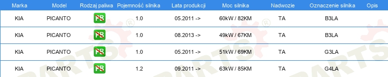 Informacje o części