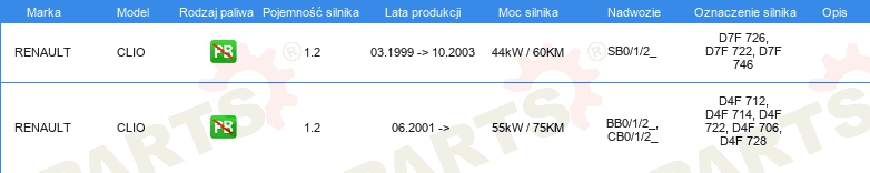 Informacje o części