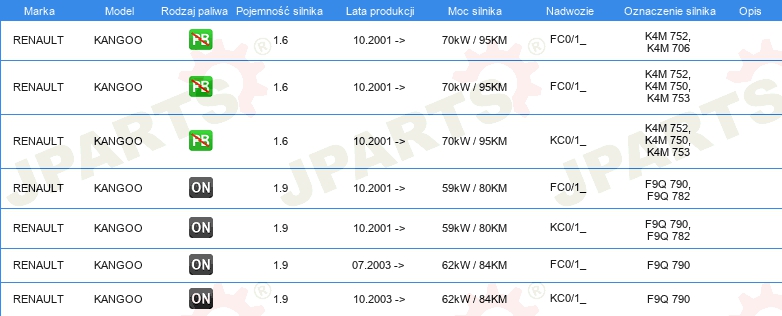 Informacje o części