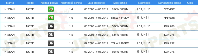 Informacje o części