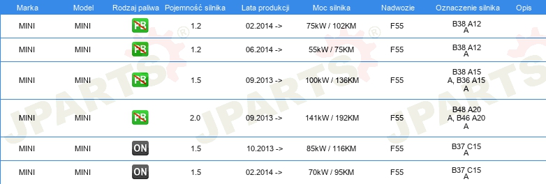Informacje o części