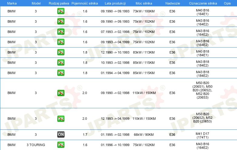 Informacje o części