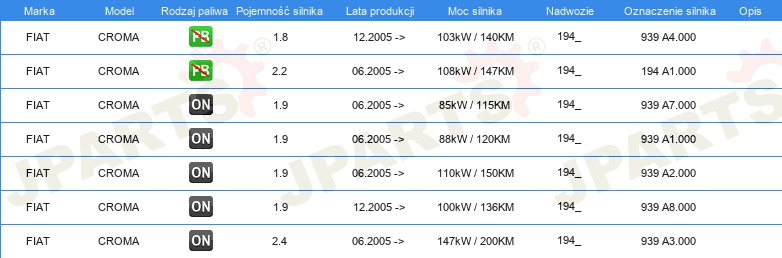 Informacje o części